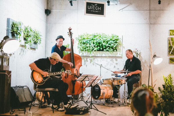 Die drei Musiker Andi Schnoz (Gitarre), Marc Jenny (Kontrabass) und Rolf Caflisch (Drums) verbindet eine jahrelange intensive Zusammenarbeit in unterschiedlichsten Formationen. Im Rahmen der Weekly Jazz Konzertreihe in Chur bringt das Trio mit verschiedenen Musikerinnen und Musikern themenspezifische Programme zur Aufführung. Der Fächer reicht dabei von traditionellem Jazz über Neuinterpretationen von Frisell- oder EST-Musik bis zu Chansons, freier Improvisation, Filmmusikquiz, Stummfilmvertonung und souliger Tanzbeinmusik. Dieses vielseitige und lustvolle Musikmachen zelebrieren sie im Trio exzessiv. Das Spielfeld bilden Jazzstandards, interpretiert wird jenseits von Gut und Böse – frisch, farbig, voller Energie und mit dem Gestus zeitgenössischer Gitarrentrios – offen, groovig, verspielt und vielseitig…